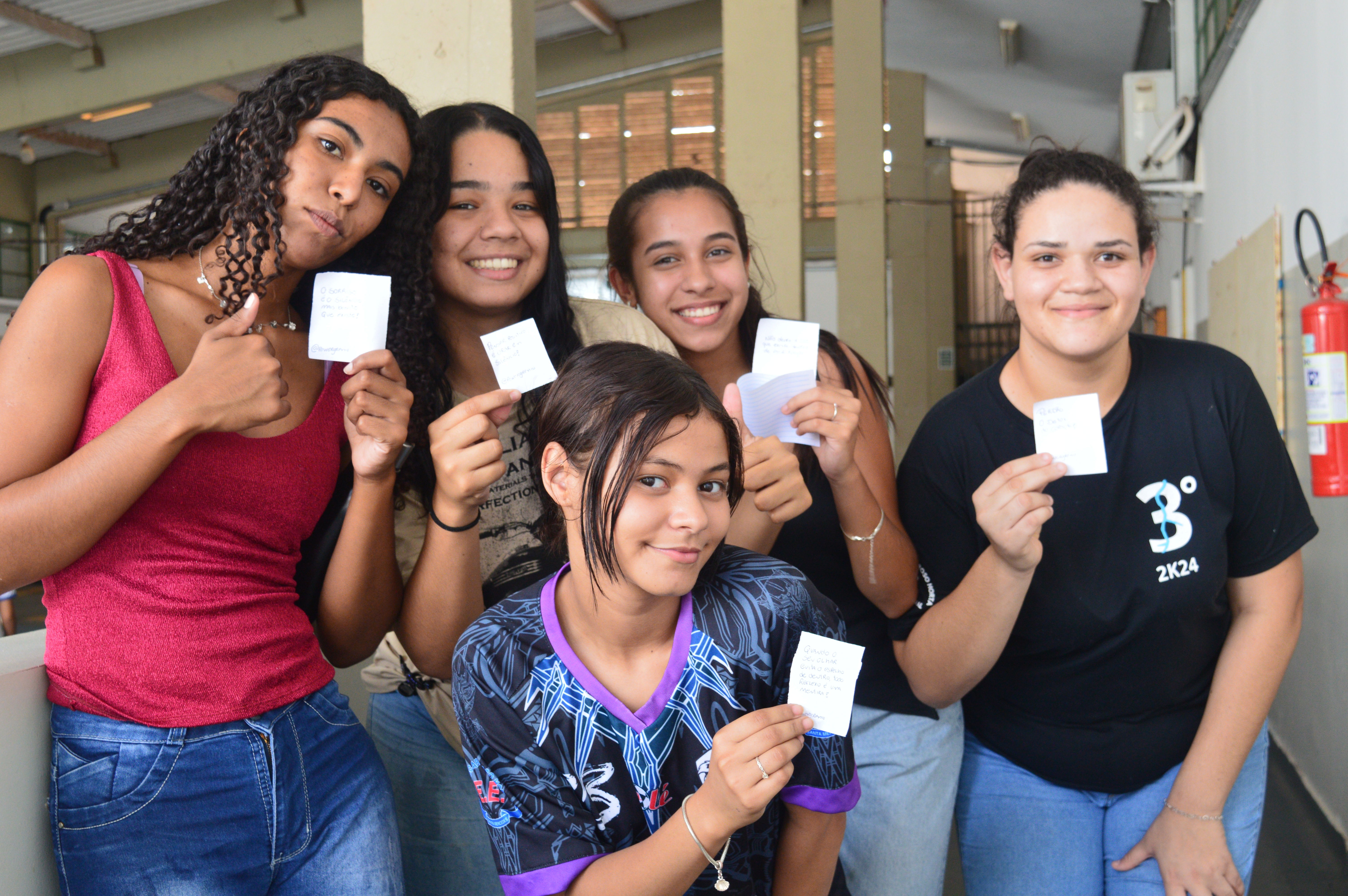 Projeto Pura Poesia + Nação Azul distribui frases de poesias para as estudantes de nossa unidade escolar.